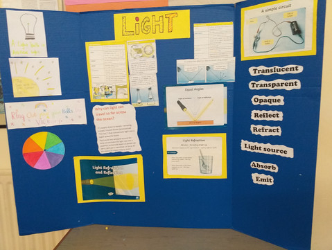 5th & 6th class investigated light using mirrors and lenses. They made rainbow spinners and periscopes. They investigated electric circuits and had fun designing and making lighthouses.